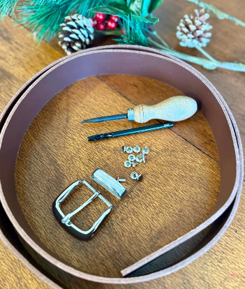 This belt kit comes with the most gorgeous Italian Leather and all the hardware and tools required to make your belt.