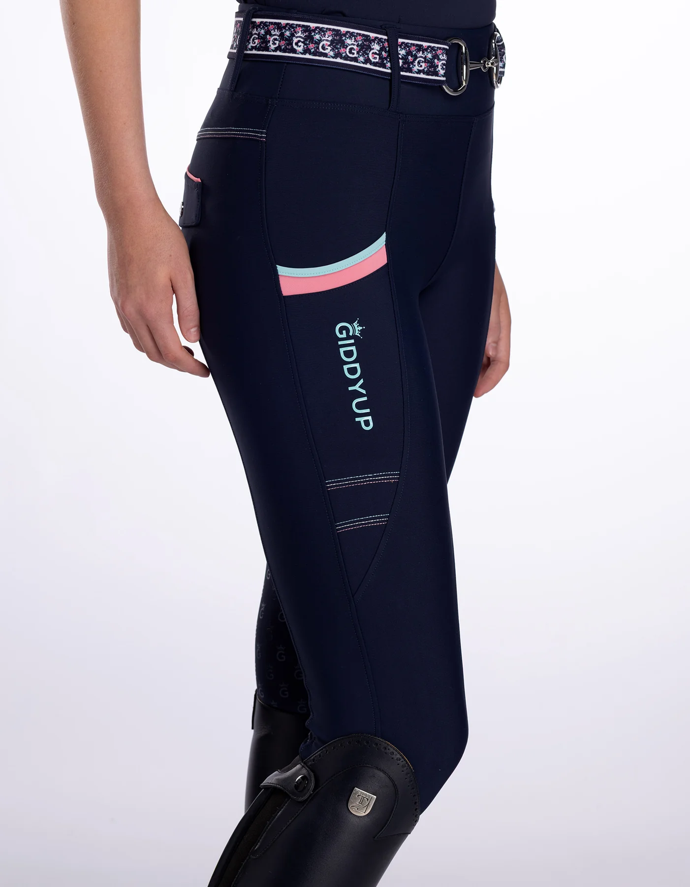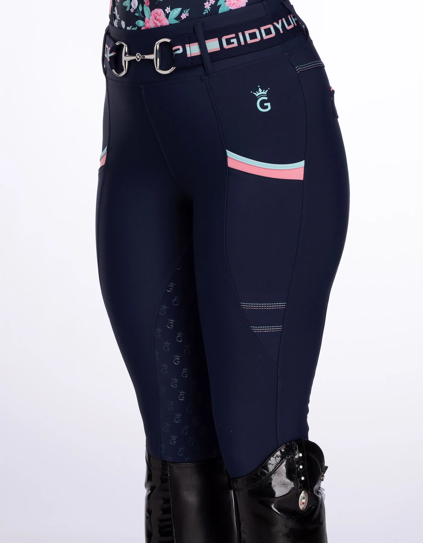 The Delilah Equestrian Tights combine performance, durability, and effortless style, making them a must-have for every rider’s wardrobe. Designed in a classic navy with bold watermelon and white stripe detailing, they’re sleek, flattering, and made to move with you.