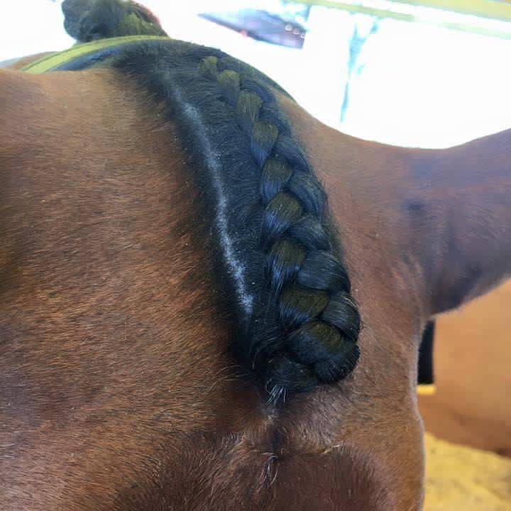 Simply secure the end of your forelock plait & push the closed fastening scissors through the length of the braid, release, then grab the bottom of the plait & pull back up through the braid for the perfect finish.