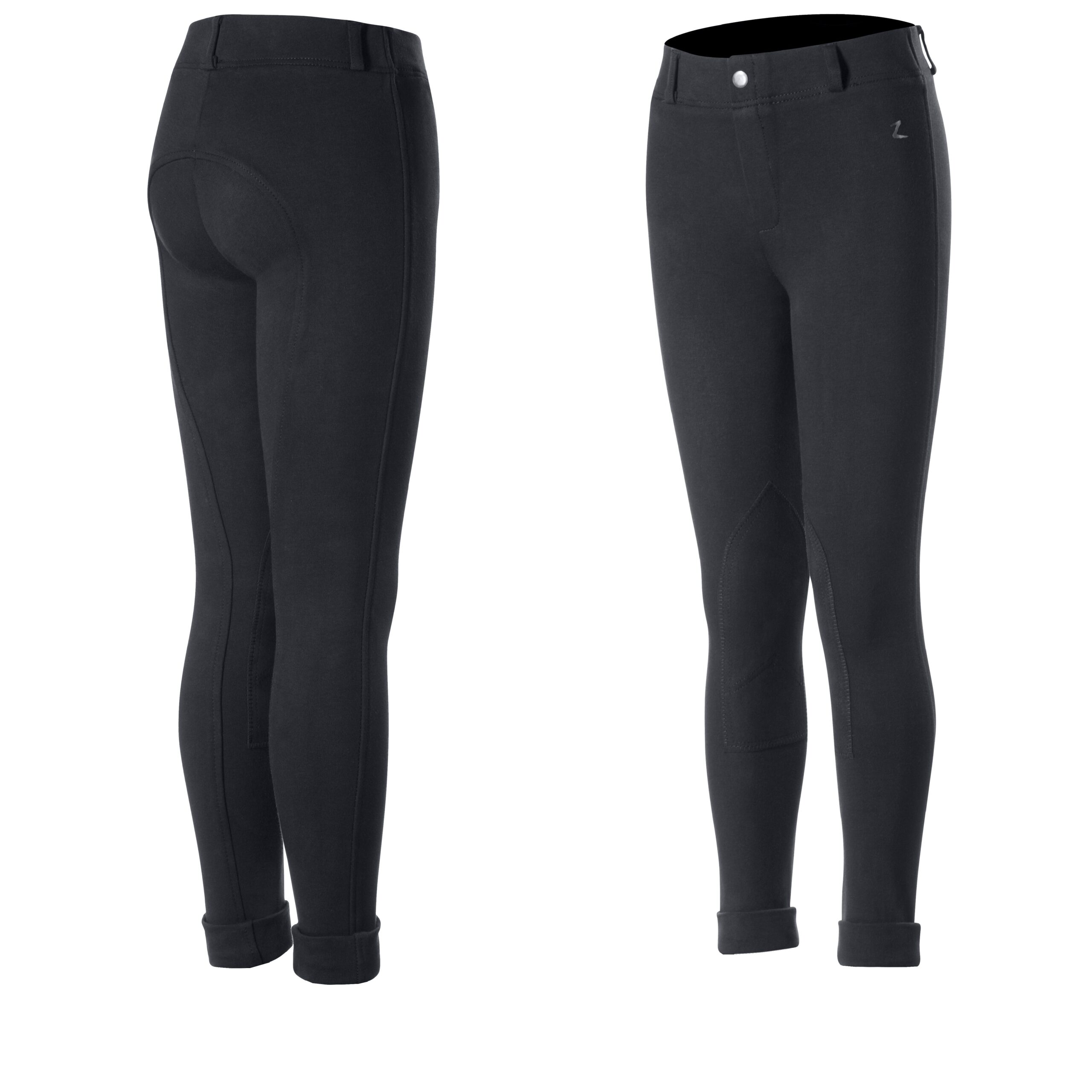 Children’s pull-on jodhpurs featuring a comfortable waistband with belt loops. The knitted fabric is soft and slightly stretchy for a perfect fit. The leather knee patches are made with the quality-tested ALOS leather for greater durability.