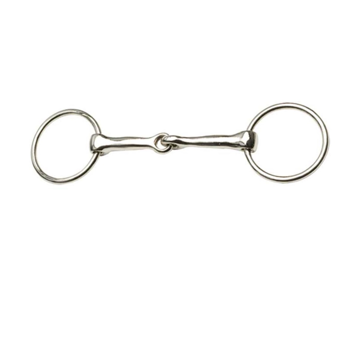Nickel Plate. Loose rings and thin, single jointed mouthpiece. Popular general riding bit.