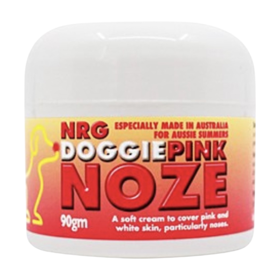 NRG Doggie Pink Noze is a natural, shield cream for dogs with pink and white sensitive skin areas. Developed specifically for hot, dry and windy Australian conditions, Doggie Pink Noze contains Vitamin E and natural oils, with no harmful chemicals.