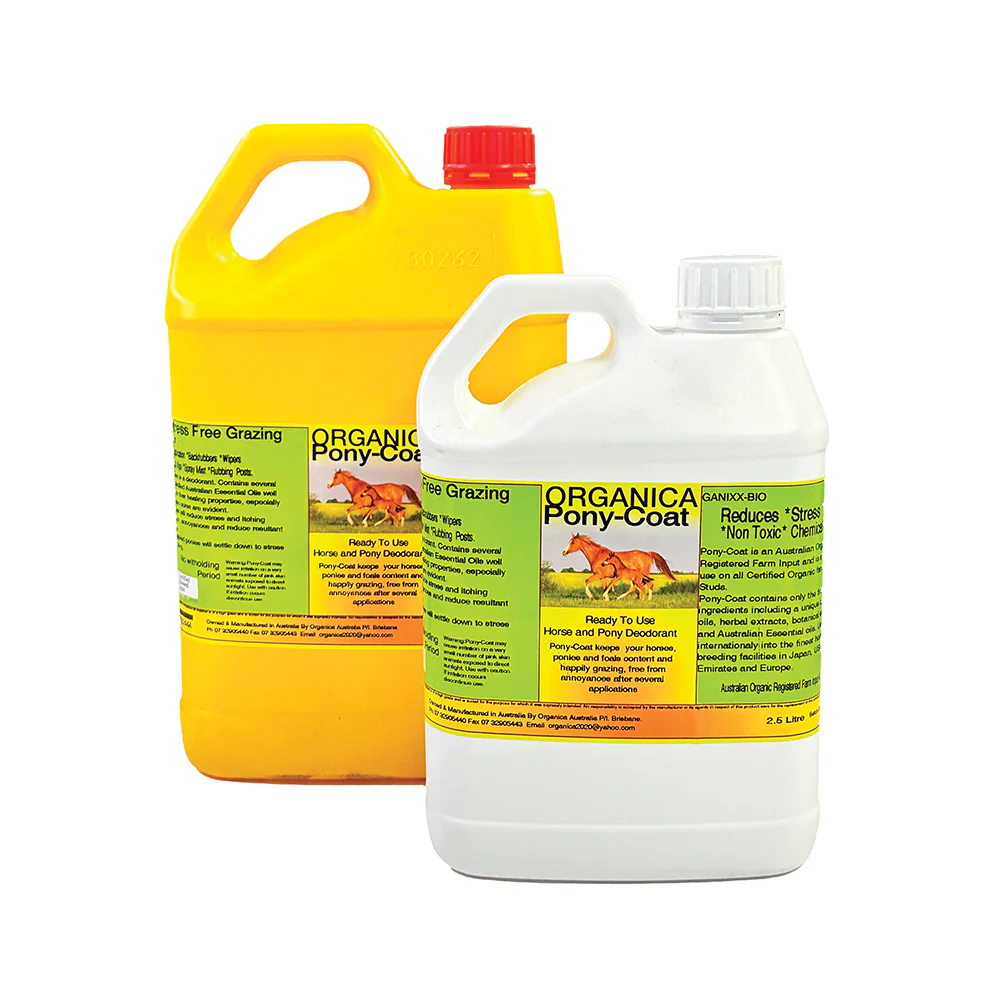 Organica Pony Coat is an eco-friendly, non-toxic formulation designed to be a deodorant to mask the smell that attracts insects to horses and to reduce stress and irritation caused by flies and biting insects.
