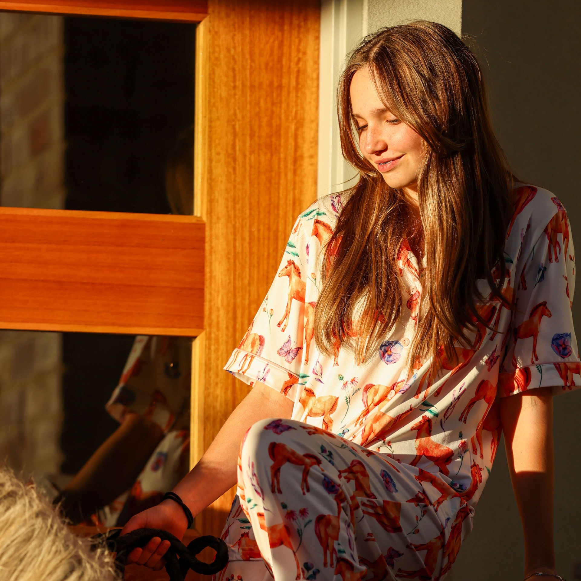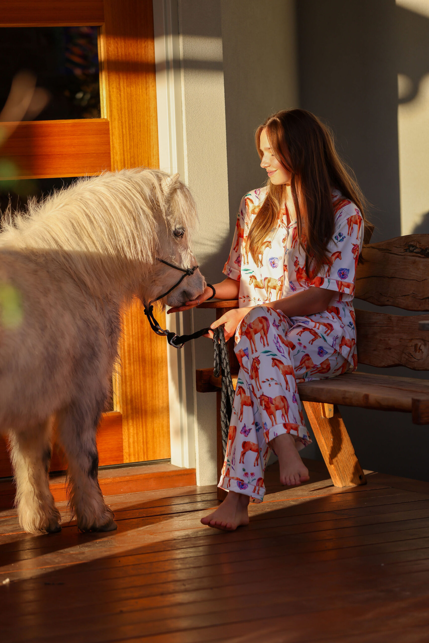 Gorgeous quality sleepwear set featuring a cute horse and pony print.
